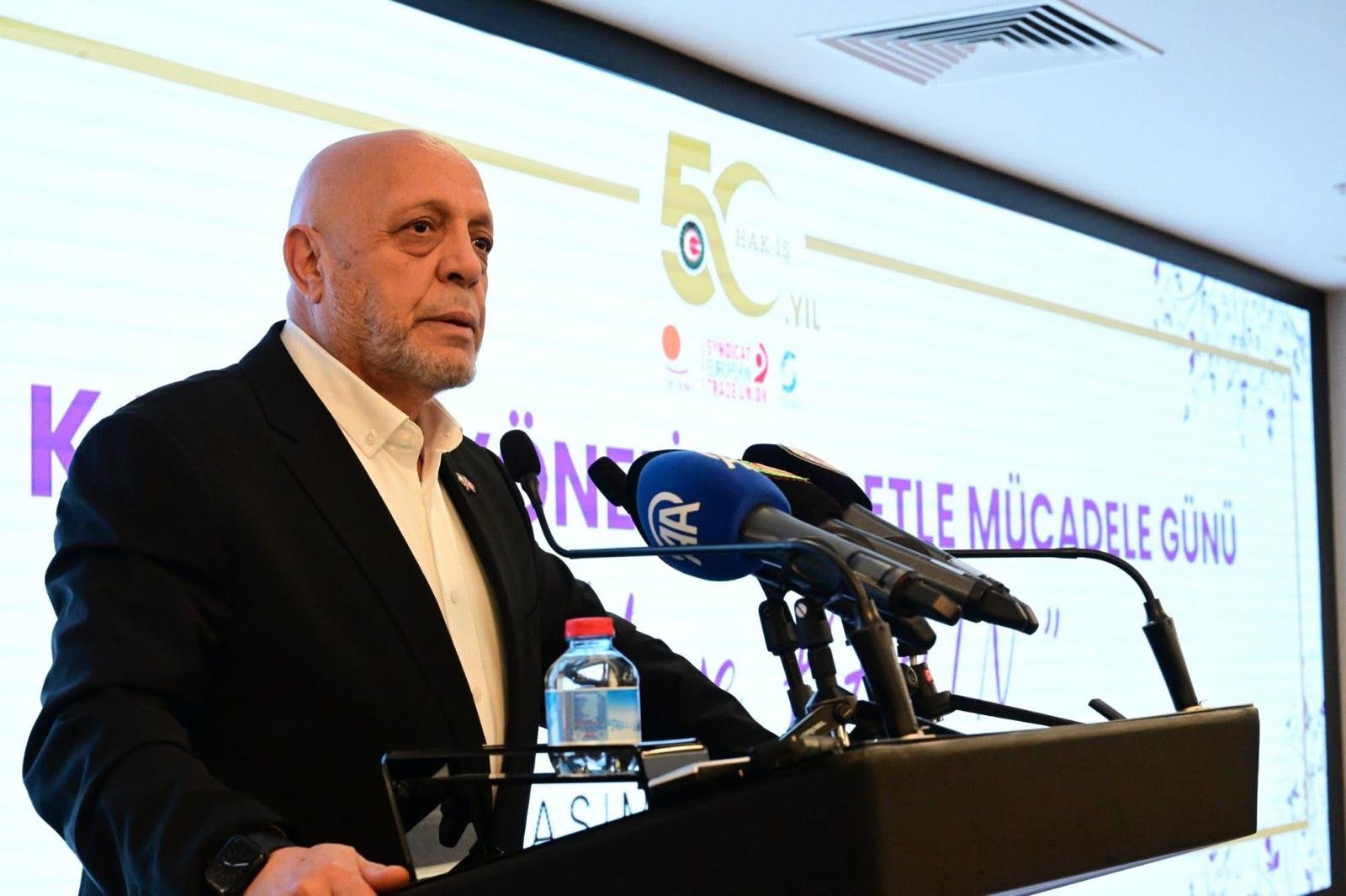 Arslan, HAK-İŞ olarak şiddet ve tacizin sona ermesi adına büyük bir mücadele verdiklerini hatırlatarak, “Hem mevzuatımızdaki eksikleri gidermek, şiddet ve tacize maruz kalabilecek ortamları ortadan kaldırmak hem de bu eylemleri gerçekleştirenlerin en ağır şekilde cezalandırılmasını sağlamak için mücadele ediyoruz. En büyük sorumluluk bize düşüyor.” dedi.