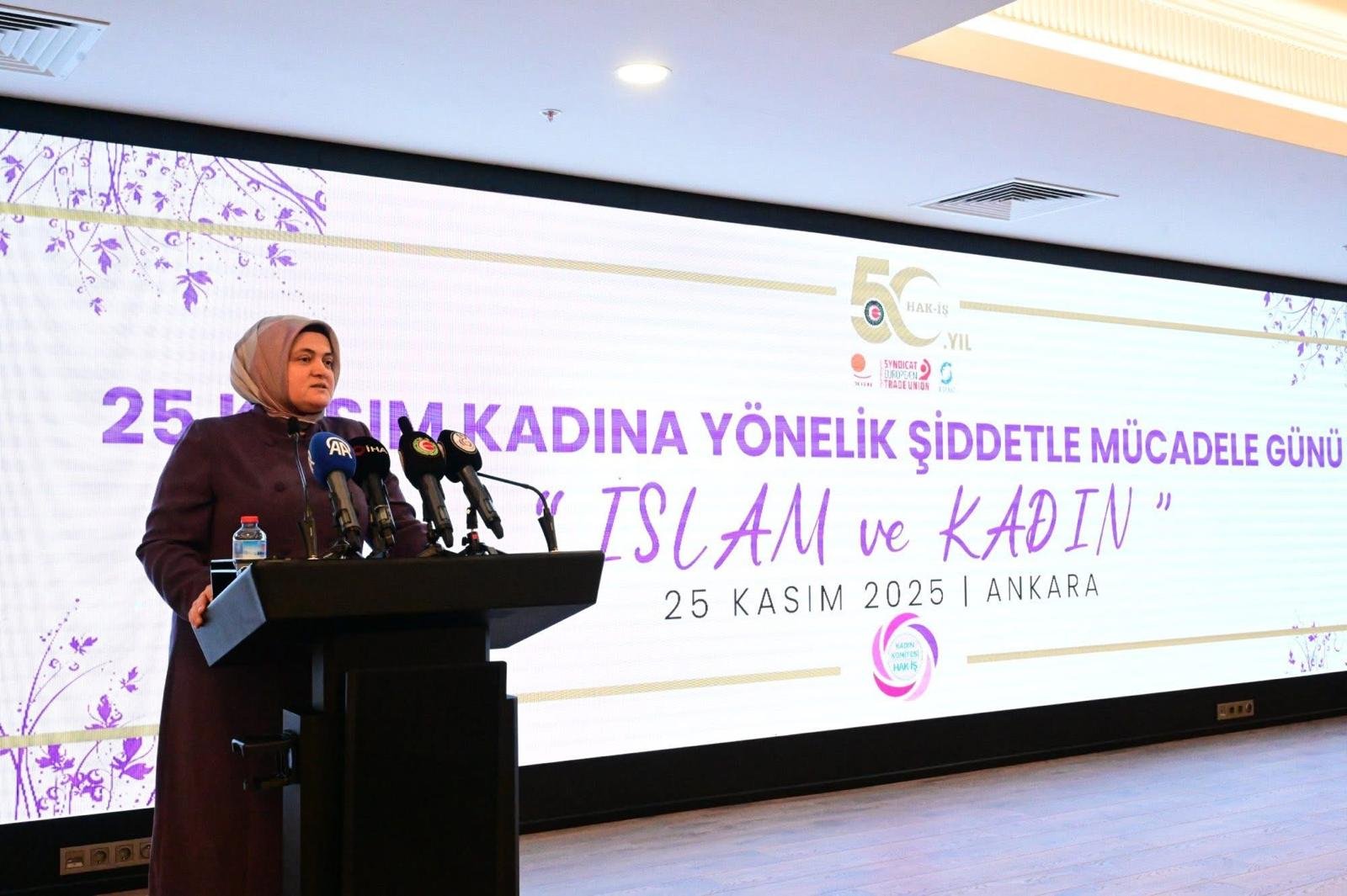 Hak-İş Genel Başkanı Arslan, ülkemizde ve dünyada kadınların şiddet ve tacize uğrama oranlarıyla ilgili yapılan istatistiklerin büyük çoğunluğunun gerçekleri yansıtmadığını, mağdurların önemli bir bölümünün sessiz kalmak zorunda olduğunu belirterek, “Aslında konu çok daha derin, geniş ve büyük. İstatistiklerde yalnızca tespit edilebilenleri görüyoruz. Bu şiddet haritası çok daha karmaşık ve çok daha büyük.” dedi.